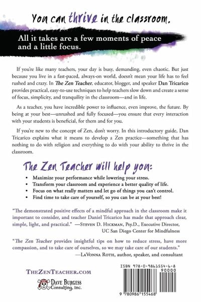 You can thrive in the classroom. All it takes are a few moments of peace and a little focus. If you're like many teachers, your day is busy, demanding, even chaotic. But just because you live in a fast-paced, always-on world, doesn't mean your life has to feel rushed and crazy. In The Zen Teacher, educator, blogger, and speaker Dan Tricarico provides practical, easy-to-use techniques to help teachers slow down and create a sense of focus, simplicity, and tranquility in the classroom - and in life. As a teacher, you have incredible power to influence, even improve, the future. By being at your best - unrushed and fully focused - you ensure that every interaction with your students is beneficial, for them and for you. If you're new to the concept of Zen, don't worry. In this introductory guide, Dan Tricarico explains what it means to develop a Zen practice - something that has nothing to do with religion and everything to do with your ability ability to thrive in the classroom. The Zen Teacher will help you: Maximize your performance while lowering your stress. Transform your classroom and experience a better quality of life. Focus on things that really matter and let go of things you can't control. Find time to take care of yourself, so you can be at your best!