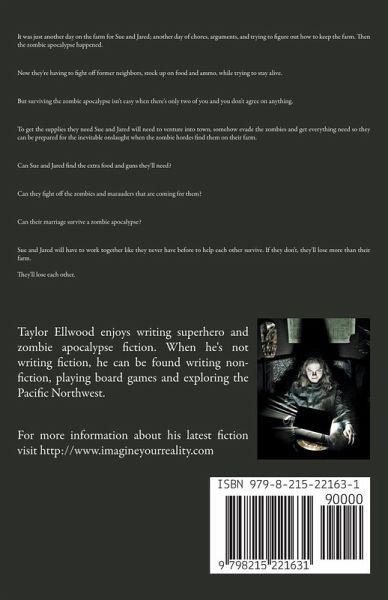 It was just another day on the farm for Sue and Jared; another day of chores, arguments, and trying to figure out how to keep the farm. Then the zombie apocalypse happened. Now they're having to fight off former neighbors, stock up on food and ammo, while trying to stay alive. But surviving the zombie apocalypse isn't easy when there's only two of you and you don't agree on anything. To get the supplies they need Sue and Jared will need to venture into town, somehow evade the zombies and get everything need so they can be prepared for the inevitable onslaught when the zombie hordes find them on their farm. Can Sue and Jared find the extra food and guns they'll need? Can they fight off the zombies and marauders that are coming for them? Can their marriage survive a zombie apocalypse? Sue and Jared will have to work together like they never have before to help each other survive. If they don't, they'll lose more than their farm. They'll lose each other.