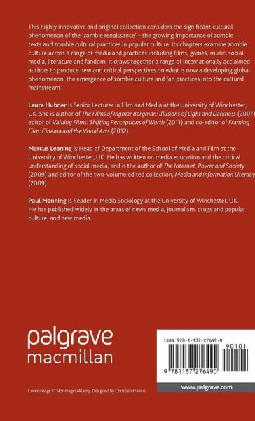 This collection addresses the significant cultural phenomenon of the 'zombie renaissance' - the growing importance of zombie texts and zombie cultural practices in popular culture. The chapters examine zombie culture across a range of media and practices including films games, music, social media, literature and fandom.