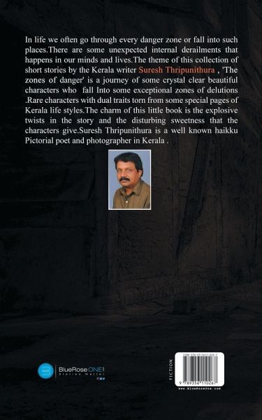 In life, we often go Through every danger zones or fall into such places. There are some unexpected internal derailments that happen in our minds and lives. The theme of this collection of short stories by the Kerala writer Suresh Thripunithura, The zones of danger is a journey of some crystal clear Beautiful characters with dual traits torn from some special pages of Kerala lifestyles. The charm of this little book is the explosive twists in the story and the disturbing sweetness of the characters. Suresh Thripunithura is a well-known haiku poet In Kerala.