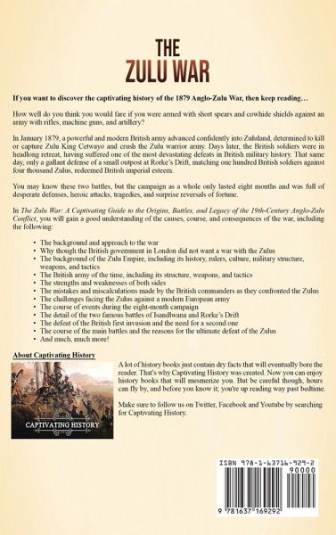 If you want to discover the captivating history of the 1879 Anglo-Zulu War, then keep reading... How well do you think you would fare if you were armed with short spears and cowhide shields against an army with rifles, machine guns, and artillery? In January 1879, a powerful and modern British army advanced confidently into Zululand, determined to kill or capture Zulu King Cetwayo and crush the Zulu warrior army. Days later, the British soldiers were in headlong retreat, having suffered one of the most devastating defeats in British military history. That same day, only a gallant defense of a small outpost at Rorke's Drift, matching one hundred British soldiers against four thousand Zulus, redeemed British imperial esteem. You may know these two battles, but the campaign as a whole only lasted eight months and was full of desperate defenses, heroic attacks, tragedies, and surprise reversals of fortune. In The Zulu War: A Captivating Guide to the Origins, Battles, and Legacy of the 19th-Century Anglo-Zulu Conflict, you will gain a good understanding of the causes, course, and consequences of the war, including the following: The background and approach to the war Why though the British government in London did not want a war with the Zulus The background of the Zulu Empire, including its history, rulers, culture, military structure, weapons, and tactics The British army of the time, including its structure, weapons, and tactics The strengths and weaknesses of both sides The mistakes and miscalculations made by the British commanders as they confronted the Zulus The challenges facing the Zulus against a modern European army The course of events during the eight-month campaign The detail of the two famous battles of Isandlwana and Rorke's Drift The defeat of the British first invasion and the need for a second one The course of the main battles and the reasons for the ultimate defeat of the Zulus And much, much more!