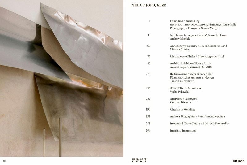 Thea Djordjadze will create a new body of work for Hamburger Kunsthalle that will offer the viewers a spatial, physical, and psychological experience. A comprehensive publication extends Djordjadze's exhibition with a wide-ranging archival section on the artist's production and exhibition history. With essays by Mihaela Chiriac, Tinatin Gurgenidze, and Andrew Maerkle, poetry by Vazha Pshavela, and a curatorial afterword by Corinne Diserens.