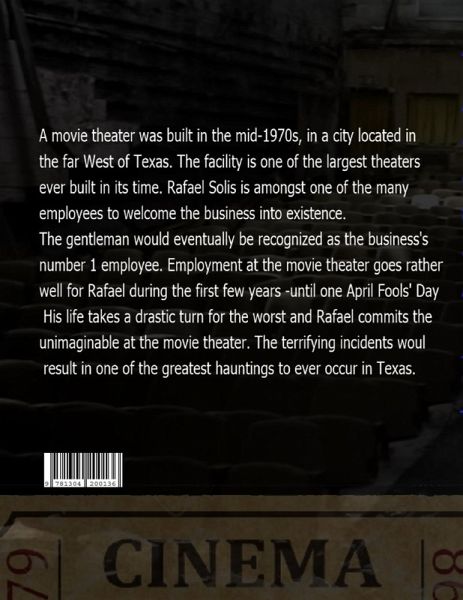 A movie theater was built in the mid-1970s, in a city located in the far West of Texas. The facility is one of the largest theaters ever built in its time. Rafael Solis is amongst one of the many employees to welcome the business into existence. The gentleman would eventually be recognized as the business's number 1 employee. Employment at the movie theater goes rather well for Rafael during the first few years -until one April Fools' Day. His life takes a drastic turn for the worst and Rafael commits the unimaginable at the movie theater. The terrifying incidents would result in one of the greatest hauntings to ever occur in Texas.