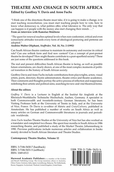 Introduction to the Series List of Plates Acknowledgements Introduction/Geoffrey V. Davis and Anne Fuchs "A Truly Living Moment": Acting and the Statements Plays/Brian Crow "The Many Individual Wills." From Crossroads to Survival. The Work of Experimental Theatre Workshop '71/Robert McLaren Whose Popular Theatre and Performance?/Martin Orkin The Performance Aesthetics of Township Theatre: Frames and Codes/Christopher Balme Theatre for Export: The Commercialization of the Black People's Struggle in South African Export Musicals/Jerry Mofokeng Theatre in Exile/Anthony Akerman My Life in the Theatre of War: The Development of an Alternative Consciousness/Matthew Krouse What is a Tribal Dress? The "Imbongi" (Praise Singer) and the "People's Poet." Reactivation of a Tradition in the Liberation Struggle/Peter Horn The Workers' Theatre in Natal/Ari Sitas "An Interest in the Making of Things." An Interview with William Kentridge/Geoff V. Davis and Anne Fuchs Tooth and Nail. Rethinking Form for the South African Theatre Malcolm Purkey Physical Images in the South African Theatre/Mark Fleishnian "I Will Remain an African." An Interview with Maishe Maponya/Geoff V. Davis and Anne Fuchs Politics and the Theatre: Current Trends in South Africa/Zakes Mda Theatre: The Political Weapon in South Africa/Doreen Mazihuko "This Compost Heap of a Country." An interview with Barne Simc/Geoff V. Davis and Anne Fuchs So What's New? The Story behind the Play/Fatima Dike PACT: Can the Leopard Change its Spots?/Carol Steinberg The Future of the Performing Arts Councils in a New South Africa/Arnold Blumer "It's Time to Have a South African Culture." An interview with Ramolao Makhene/Geoff V. Davis and Anne Fuchs Appendices I Publications Appeal Board Decision on Public Entertainment: Famous Dead Man II Weekly Mail reports on Famous Dead Man and Sunrise City Notes on Contributors Index of Proper Names Index of Titles Subject index.