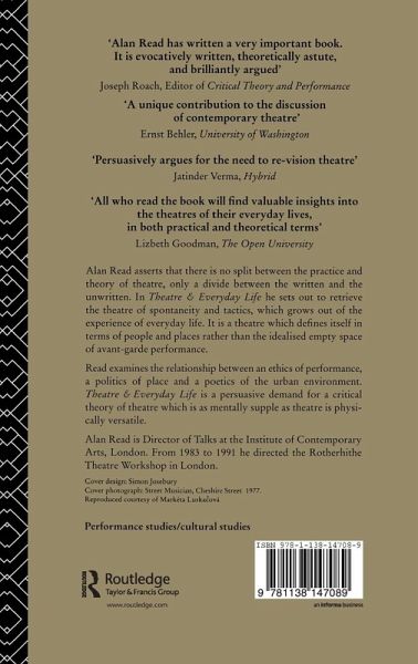 Read examines the relationship between an ethics of performance, a politics of place and a poetics of the urban environment.