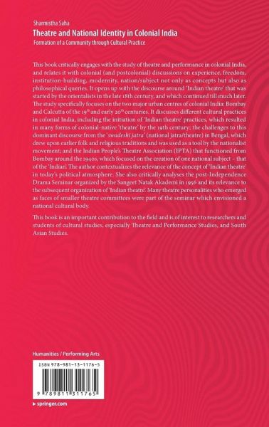 This book critically engages with the study of theatre and performance in colonial India, and relates it with colonial (and postcolonial) discussions on experience, freedom, institution-building, modernity, nation/subject not only as concepts but also as philosophical queries. It opens up with the discourse around 'Indian theatre' that was started by the orientalists in the late 18th century, and which continued till much later. The study specifically focuses on the two major urban centres of colonial India: Bombay and Calcutta of the 19th and early 20th centuries. It discusses different cultural practices in colonial India, including the initiation of 'Indian theatre' practices, which resulted in many forms of colonial-native 'theatre' by the 19th century; the challenges to this dominant discourse from the 'swadeshi jatra' (national jatra/theatre) in Bengal, which drew upon earlier folk and religious traditions and was usedas a tool by the nationalist movement; and the Indian People's Theatre Association (IPTA) that functioned from Bombay around the 1940s, which focused on the creation of one national subject - that of the 'Indian'. The author contextualizes the relevance of the concept of 'Indian theatre' in today's political atmosphere. She also critically analyses the post-Independence Drama Seminar organized by the Sangeet Natak Akademi in 1956 and its relevance to the subsequent organization of 'Indian theatre'. Many theatre personalities who emerged as faces of smaller theatre committees were part of the seminar which envisioned a national cultural body.