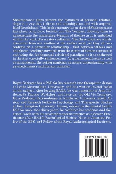Shakespeare's plays present the dynamics of personal relationships in a way that is direct and unambiguous, and with unparalleled forcefulness. This book concentrates on three of Shakespeare's last plays, King Lear, Pericles and The Tempest, allowing them to demonstrate the underlying dynamic of theatre as it is embodied within the work of a master craftsman. The three plays are widely dissimilar from one another at the surface level, yet they all concentrate on a particular relationship - that between fathers and daughters - working outwards from the centre of human experience and using the fundamental relational paradigm as it is enshrined in theatre, especially Shakespeare's. As a professional actor as well as an academic, the author combines an actor's understanding with psychodynamics and literary criticism.