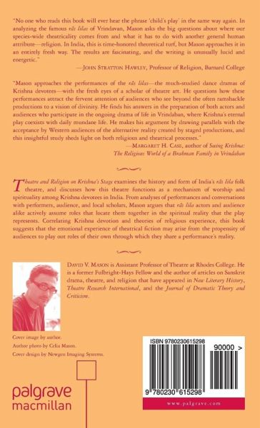"David Mason approaches the performances of the râs lilas - the much-studied dance dramas of Krishna devotees - with the fresh eyes of a scholar of theatre art. He questions how these performances attract the fervent attention of audiences who see beyond the often ramshackle productions to a vision of divinity. He finds his answers in the preparation of both actors and audiences who participate in the ongoing drama of life in Vrindaban, where Krishna s eternal play coexists with daily mundane life. He makes his argument by drawing parallels with the acceptance by Western audiences of the alternative reality created by staged productions, and this insightful study sheds light on both religious and theatrical processes." - Margaret H. Case, author of Seeing Krishna: The Religious World of a Brahman Family in Vrindaban