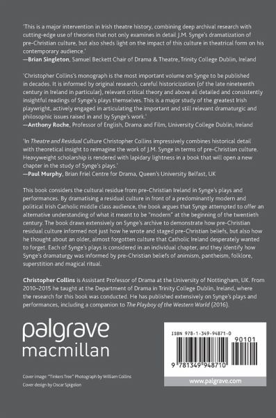 "The book is extremely well documented, drawing on extensive archival material and proposing careful readings of the philosophical texts which had a lasting influence on Synge's writings, prominent amongst which is James Frazer's The Golden Bough (1890). In historicizing Synge's plays and taking folk belief seriously, Collins's book offers an important contribution to postcolonial readings of the Irish Literary Revival and will be of enduring interest to scholars of Synge and of Edwardian Ireland." (Hélène Lecossois, Theatre Research International, Vol. 42, (3), October, 2017)