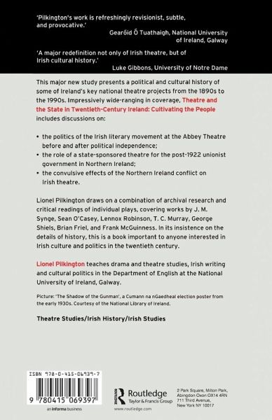 This major new study presents a political and cultural history of some of Ireland's key national theatre projects from the 1890s to the 1990s. Impressively wide-ranging in coverage, Theatre and the State in Twentieth-Century Ireland: Cultivating the People includes discussions on: the politics of the Irish literary movement at the Abbey Theatre before and after political independence; the role of a state-sponsored theatre for the post-1922 unionist government in Northern Ireland; the convulsive effects of the Northern Ireland conflict on Irish theatre. Lionel Pilkington draws on a combination of archival research and critical readings of individual plays, covering works by J. M. Synge, Sean O'Casey, Lennox Robinson, T. C. Murray, George Shiels, Brian Friel, and Frank McGuinness. In its insistence on the details of history, this is a book important to anyone interested in Irish culture and politics in the twentieth century.