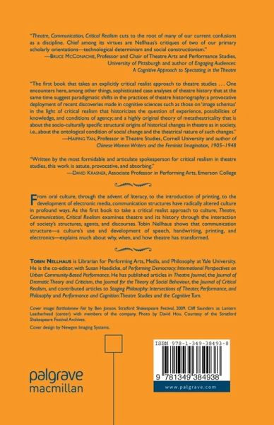 'Theater, Communication, Critical Realism cuts to the root of many of our current confusions as a discipline. Chief among its virtues are Nellhaus's critiques of two of our primary scholarly orientations, technological determinism and social constructionism.' Bruce McConachie, author of Engaging Audiences: A Cognitive Approach toSpectating in the Theatre