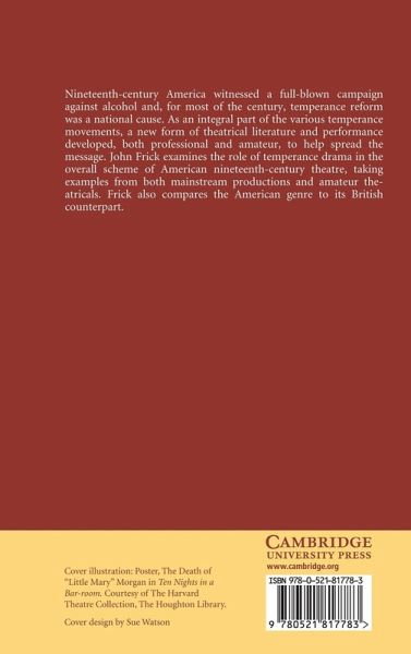 List of figures Acknowledgements Introduction: A complex causality of neglect 1. 'He drank from the poisoned cup': temperance reform in nineteenth-century America 2. 'Nine-tenths of all kindness ...': literature, the theatre, and the spirit of reform 3. 'Every odium within one word': early American temperance drama and British prototypes 4. Reform comes to Broadway: temperance on America's mainstream stages 5. 'In the halls': Temperance entertainments following the Civil War 6. Epilogue: 'Theatrical 'Dry Rot'?': or what price the anti-saloon league? Appendix: nineteenth-century temperance plays Notes Bibliography Index.