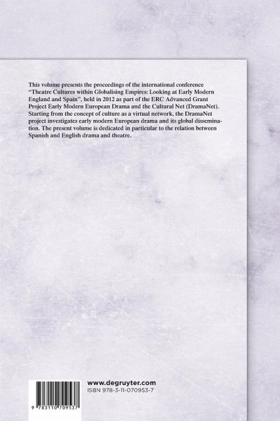 This volume presents the proceedings of the international conference "Theatre Cultures within Globalising Empires: Looking at Early Modern England and Spain", held in 2012 as part of the ERC Advanced Grant Project Early Modern European Drama and the Cultural Net (DramaNet). Implementing the concept of culture as a virtual network, it investigates Early modern European drama and its global dissemination. The 12 articles of the volume - all written by experts in the field teaching in the United Kingdom, the USA, Russia, Switzerland, India and Germany - focus on a selection of English and Spanish dramas from the sixteenth and seventeenth centuries. Analysing and comparing motifs, formal parameters as well as plot structures, they discuss the commonalities and differences of Early modern drama in England and Spain.