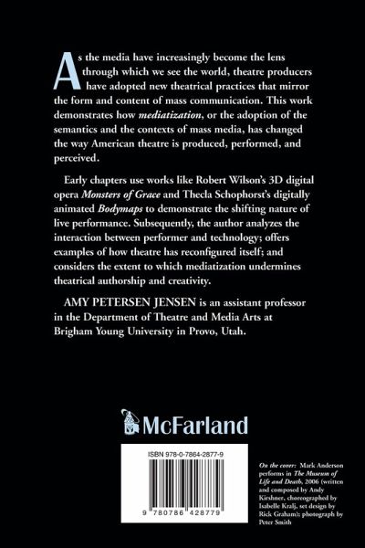 As the media have increasingly become the lens through which we see the world, media styles have shaped even the fine arts, and contemporary theatre is particularly indebted to mass media's dramatic influence. In order to stay culturally and financially viable, theatre producers have associated theatrical productions and their promotion with film, television, and the Internet by adopting new theatrical practices that mirror the form and content of mass communication. This work demonstrates how mediatization, or the adoption of the semantics and the contexts of mass media, has changed the way American theatre is produced, performed, and perceived. Early chapters use works like Robert Wilson's 3D digital opera Monsters of Grace and Thecla Schophorst's digitally animated Bodymaps to demonstrate the shifting nature of live performance. Critical analysis of the interaction between the live performer and digital technology demonstrates that the use of media technology has challenged and changed traditional notions of dramatic performance. Subsequent discussion sustains the argument that theatre has reconfigured itself to access the economic and cultural power of the media. Final chapters consider the extent to which mediatization undermines theatrical authorship and creativity.
