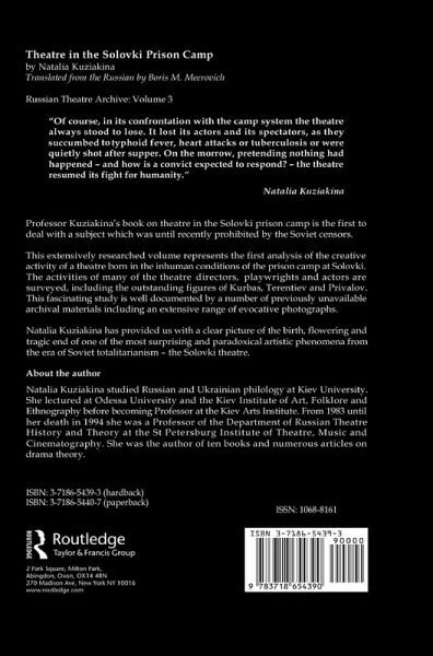 First Published in 1996. The Russian Theatre Archive makes available in English the best avantgarde plays, from the pre-Revolutionary period to the present day. It features monographs on major playwrights and theatre directors, introductions to previously unknown works, and studies of the main artistic groups and periods. Plays are presented in performing edition translations, including (where appropriate) musical scores, and instructions for music and dance. Whenever possible the translated texts will be accompanied by videotapes of performances of plays in the original language. Prison camp theatre is a theme justified by actual life, even though the marriage of such concepts as 'theatre' and 'prison camp' may appear, to the ordinary mind, preposterous.