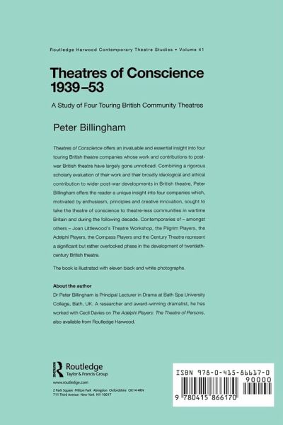 Theatres of Conscience offers an invaluable and essential insight into four touring British theatre companies whose work and contributions to post-war British theatre have largely gone unnoticed. Combining a rigorous scholarly evaluation of their work and their broadly ideological and ethical contribution to wider post-war developments in British theatre. Peter Billingham offers the reader a unique insight into four companies which, motivated by enthusiasm, principles and creative innovation, sought to take the theatre of conscience to theatre-less communities in wartime Britain and during the following decade. Contemporaries of - amongst others - Joan Littlewood's Theatre Workshop, the Pilgrim Players, the Adelphi Players, the Compass Players and the Century Theatre represent a significant but rather overlooked phase in the development of twentieth-century British theatre.