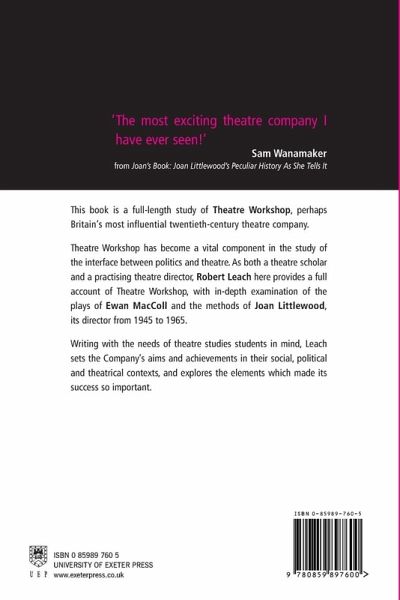 Theatre Workshop: Joan Littlewood and the Making of Modern British Theatre is the first in-depth study of perhaps Britain's most influential twentieth-century theatre company. The book sets the company's aims and achievements in their social, political and theatrical contexts, and explores the elements which made its success so important.