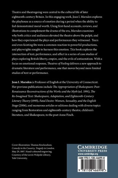 This engaging account of theatregoing in the later eighteenth century explores the playhouse as a source of emotion during a period when the ability to feel demonstrated moral worth. Theatres of Feeling delivers a new approach to dramatic literature and performance, moving beyond more limited studies of text or performance.