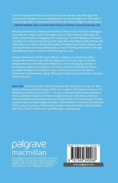 Theatres of Immanence: Deleuze and the Ethics of Performance is the first monograph to provide an in-depth study of the implications of Deleuze's philosophy for theatre and performance. Drawing from Goat Island, Butoh, Artaud and Kaprow, as well from Deleuze, Bergson and Laruelle, the book conceives performance as a way of thinking immanence.
