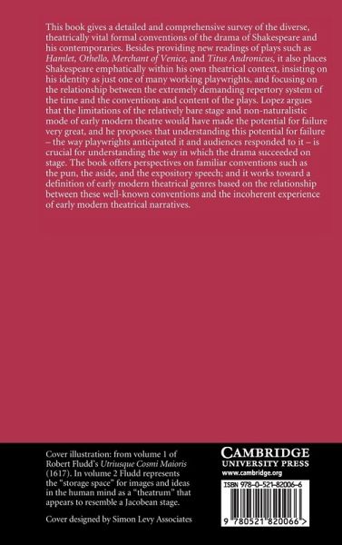 This book gives a detailed and comprehensive survey of the diverse, theatrically vital formal conventions of the drama of Shakespeare and his contemporaries. Besides providing readings of plays such as Hamlet, Othello, Merchant of Venice, and Titus Andronicus, it also places Shakespeare emphatically within his own theatrical context, and focuses on the relationship between the demanding repertory system of the time and the conventions and content of the plays. Lopez argues that the limitations of the relatively bare stage and non-naturalistic mode of early modern theatre would have made the potential for failure very great, and he proposes that understanding this potential for failure is crucial for understanding the way in which the drama succeeded on stage. The book offers perspectives on familiar conventions such as the pun, the aside and the expository speech; and it works toward a definition of early modern theatrical genres based on the relationship between these well-known conventions and the incoherent experience of early modern theatrical narratives.