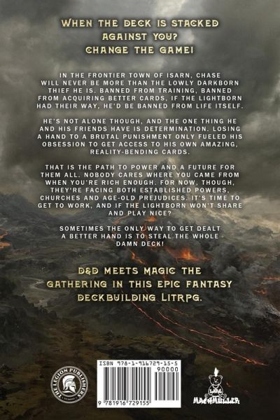 When the deck is stacked against you? Change the game! In the frontier town of Isarn, Chase will never be more than the lowly Darkborn thief he is. Banned from training, banned from acquiring better cards, if the Lightborn had their way, he'd be banned from life itself. He's not alone though, and the one thing he and his friends have is determination. Losing a hand to a brutal punishment only fueled his obsession to get access to his own amazing, reality-bending cards. That is the path to power and a future for them all. Nobody cares where you came from when you're rich enough. For now, though, they're facing both established powers, churches and age-old prejudices. It's time to get to work, and if the Lightborn won't share and play nice? Sometimes the only way to get dealt a better hand is to steal the whole damn deck! D&D meets Magic the Gathering in this epic fantasy deckbuilding LitRPG.