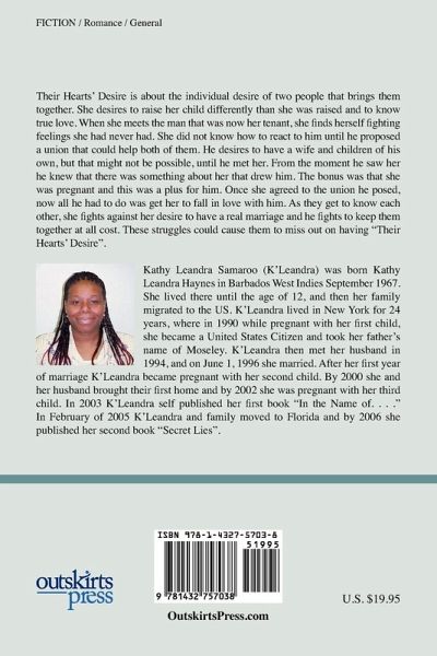 Their Hearts' Desire is about the individual desire of two people that brings them together. She desires to raise her child differently than she was raised and to know true love. When she meets the man that was now her tenant, she finds herself fighting feelings she had never had. She did not know how to react to him until he proposed a union that could help both of them. He desires to have a wife and children of his own, but that might not be possible, until he met her. From the moment he saw her he knew that there was something about her that drew him. The bonus was that she was pregnant and this was a plus for him. Once she agreed to the union he posed, now all he had to do was get her to fall in love with him. As they get to know each other, she fights against her desire to have a real marriage and he fights to keep them together at all cost. These struggles could cause them to miss out on having "Their Hearts' Desire".
