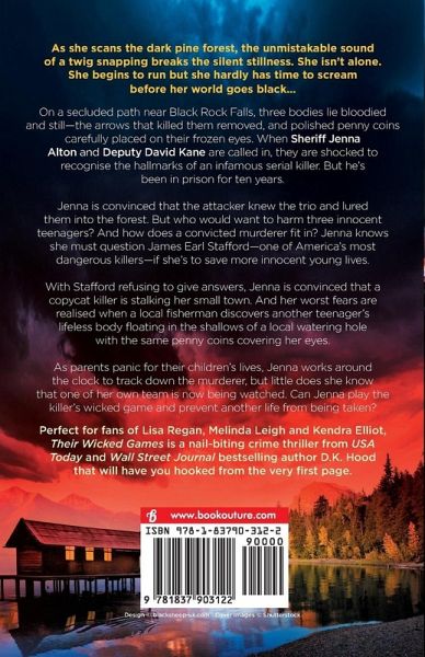¿¿As she scans the dark pine forest, the unmistakable sound of a twig snapping breaks the silent stillness. She isn't alone. She begins to run but she hardly has time to scream before her world goes black... On a secluded path near Black Rock Falls, three bodies lie bloodied and still-the arrows that killed them removed, and polished penny coins carefully placed on their frozen eyes. When Sheriff Jenna Alton and Deputy David Kane are called in, they are shocked to recognise the hallmarks of an infamous serial killer. But he's been in prison for ten years. Jenna is convinced that the attacker knew the trio and lured them into the forest. But who would want to harm three innocent teenagers? And how does a convicted murderer fit in? Jenna knows she must question James Earl Stafford-one of America's most dangerous killers-if she's to save more innocent young lives. With Stafford refusing to give answers, Jenna is convinced that a copycat killer is stalking her small town. And her worst fears are realised when a local fisherman discovers another teenager's lifeless body floating in the shallows of a local watering hole with the same penny coins covering her eyes. As parents panic for their children's lives, Jenna works around the clock to track down the murderer, but little does she know that one of her own team is now being watched. Can Jenna play the killer's wicked game and prevent another life from being taken? Perfect for fans of Lisa Regan, Melinda Leigh and Kendra Elliot, Their Wicked Games is a nail-biting crime thriller from USA Today and Wall Street Journal bestselling author D.K. Hood that will have you hooked from the very first page. **Each Kane and Alton book can be read as part of the series or as a standalone** What readers are saying about Their Wicked Games: "Heart-stopping... The action is non-stop." Harlequin Junkie, 5 stars "Wow! What a rollercoaster ride of intrigue and mayhem." Goodreads reviewer, 5 stars "My heart was in my mouth... I couldn't turn the pages quick enough... Oh my goodness!" Goodreads reviewer, 5 stars "Another five-star outing, the series just keeps getting better and better and better, and this one is a true edge-of-your-seat thriller." Goodreads reviewer, 5 stars "Thrilling... Amazing... I started chapter 39 as I decided to make myself a cup of tea. I was so overwhelmed by emotions and sucked so deep into the story, I forgot about it and ended up with a stone-cold drink. But it was worth it. No doubt about that... This was on hell of a book, for sure." B for Bookreview, 5 stars "From the very start you're hooked and pulled into the story that is full of surprises." Spooky's Maze of Books, 5 stars What readers are saying about D.K. Hood: "Oh wow, I can't say enough about this one!! So good!! Literally had me guessing until the reveal... Captivated." Sip_andread, 5 stars "I blew through this like the wind! Fantastic read!" NetGalley reviewer, 5 stars "Wow! Still trying to catch my breath." NetGalley reviewer, 5 stars
