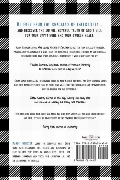 Be free from the shackles of infertility and discover the joyful, hopeful truth of God's will for your empty womb and your broken heart. Mandi Windsor's book #The Joyful Mother of Children is refreshingly written out of a place of honesty, passion and vulnerability. It is a timeless, specific book of instruction for those struggling with trying to conceive natural children, but it also is so much more, because it deals with the spiritual aspect of a life totally surrendered to Christ and how that surrendered life will lead to a fulfilled life, which can be applied to any area of struggle in you might be dealing with. As a counselor to women, I have worked with, as well as personally experienced, the pain and sometimes debilitating issue of infertility. As I read, my mind kept going to other women that I know who could use this guide to help them with their struggle. I wish I had this book when I was silently living my own struggle with infertility many years ago; what a difference it would have made for me. Marsha Crowder, Counselor, lead pastor's wife and director of Women's Ministry at Christian Life Center, Layton, Utah Every woman struggling to conceive needs to read Mandi Windsor's new book, #TheJoyfulMotherofChildren. Her God-inspired words make this resource packed full of truth that will leave you encouraged and empowered with hope to believe for the impossible. Elisha Kearns, author of the blog, Waiting for Baby Bird and founder of Waiting for Baby Bird Ministries "This book will build your faith and bring you such hope and peace. You will laugh and cry, and your life will be transformed by the powerful truths on every page." Patty Noel, author of Momistry