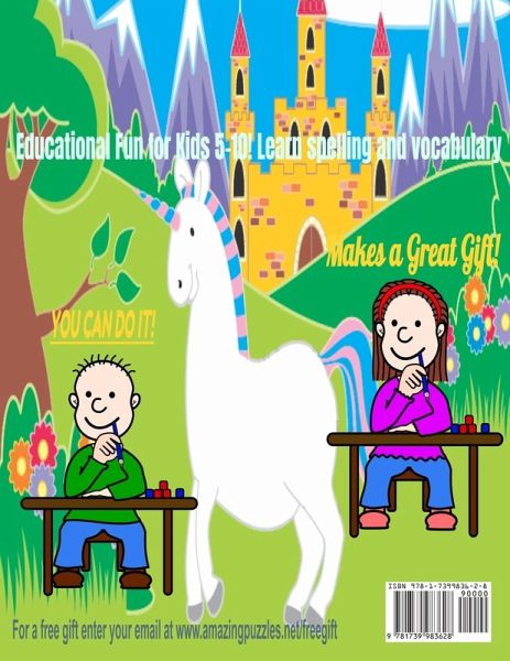 Worried your child is spending too long online or on their x-box? Boost your children's learning while providing hours of fun with these Word Search and Color me in Puzzles! (away from their x-box!) ¿57 word search puzzles plus ¿57 "Color me in" pages bonus Child-friendly themed puzzles to make it fun Graduated difficulty levels: ¿Easy ¿Medium ¿Hard Suitable for beginners (Kindergarten) and clever kids. Clear and helpful instructions and indexed Solutions at the back. Child-friendly Word search and Color me in puzzle book helps kids to: ¿Learn Vocabulary ¿Practice Spelling ¿Improve Reading Skills Boost your child's brain power and entertain them for hours! Themes: Pirates, fairytale, Halloween, kids movies, stone age, animals, country names, school, seaside, ocean, playground, superheroes, feelings, weather, geography, vegetables, transport, family, shops, breakfast, dinner, lunch, famous places, country names, desert, fishing and much more! Your child can color in the pirates page then do the pirates Word Search. Motivating words on each Color me in page "YOU CAN DO IT!" Kid-friendly themes and with illustrations: Superheroes, ocean life, family, food, and camping are just some of the 57 themes of these word search and color me in puzzles. Helps develop word association and general language skills in your child. 8.5 x 11" large puzzle book on quality paper. 182 pages.
