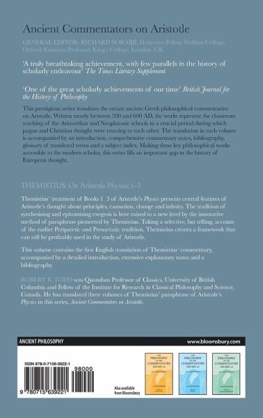 Themistius' treatment of Books 1-3 of Aristotle's Physics presents central features of Aristotle's thought about principles, causation, change and infinity. The tradition of synthesising and epitomising exegesis is here raised to a new level by the innovative method of paraphrase pioneered by Themistius. Taking a selective, but telling, account of the earlier Peripatetic and Presocratic tradition, Themistius creates a framework that can still be profitably used in the study of Aristotle. This volume contains the first English translation of Themistius' commentary, accompanied by a detailed introduction, extensive explanatory notes and a bibliography.