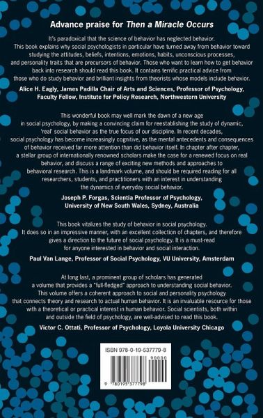 Focusing attention on a multiplicity of issues surrounding the study of behavior is timely and important. Some scholars believe that, across various sub-disciplines of the field, social psychology actually has contributed a great deal to our understanding of behavior and its antecedents. From this perspective, there is considerable utility in drawing together such work in one place. Other scholars suggest that, though there has been great progress elucidating the internal cognitive, affective and motivational underpinnings of behavior, much less research focuses on external behavior itself. From this perspective, it is important to identify the theoretical gaps, the empirical needs, and the focal issues that still demand attention. Chapters in this timely volume review some of these key issues, with contributions from some of the world's leading social and personality psychologists.