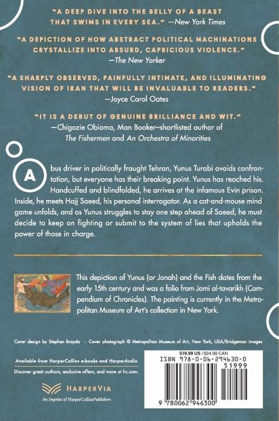 An critically-acclaimed Iranian author makes his American literary debut with this powerful and harrowing psychological portrait of modern Iran?an unprecedented and urgent work of fiction with echoes of The Stranger, 1984 , and The Orphan Master's Son?that exposes the oppressive and corrosive power of the state to bend individual lives. Yunus Turabi, a bus driver in Tehran, leads an unremarkable life. A solitary man since the unexpected deaths of his father and mother years ago, he is decidedly apolitical?even during the driver's strike and its bloody end. But everyone has their breaking point, and Yunus has reached his. Handcuffed and blindfolded, he is taken to the infamous Evin prison for political dissidents. Inside this stark, strangely ordered world, his fate becomes entwined with Hajj Saeed, his personal interrogator. The two develop a disturbing yet interdependent relationship, with each playing his assigned role in a high stakes psychological game of cat and mouse, where Yunus endures a mind-bending cycle of solitary confinement and interrogation. In their startlingly intimate exchanges, Yunus's life begins to unfold?from his childhood memories growing up in a freer Iran to his heartbreaking betrayal of his only friend. As Yunus struggles to hold on to his sanity and evade Saeed's increasingly undeniable accusations, he must eventually make an impossible choice: continue fighting or submit to the system of lies upholding Iran's power. Gripping, startling, and masterfully told, Then the Fish Swallowed Him is a haunting story of life under despotism.