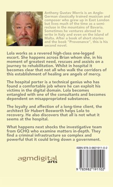 Lola works as a revered high-class one-legged escort in London. She happens across Brian whom she, in his moment of greatest need, rescues and assists on a journey to rehabilitation. Whilst in hospital it becomes clear that not all who walk the corridors of this establishment of healing are angels of mercy. The hospital porter is a technical genius who has found a comfortable job where he can exploit his victims in the digital domain. Lola becomes entangled with one of the consultants and becomes dependent on misappropriated substances. The loyalty and affection of a long-time client, the architect Sir Hubert Bosworth helps Lola to recovery. He also discovers that all is not what it seems at the hospital. What happens next shocks the investigative team from GCHQ who examine matters in-depth. They find a criminal infrastructure so complex and powerful that it could bring down a government.