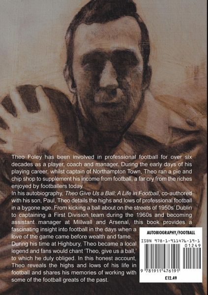 Theo Foley has been involved in professional football for over six decades as a player, coach and manager. During the early days of his playing career, whilst captain of Northampton Town, Theo ran a pie and chip shop to supplement his income from football, a far cry from the riches enjoyed by footballers today. In his autobiography, Theo Give Us a Ball: A Life in Football, co-authored with his son, Paul, Theo details the highs and lows of professional football in a bygone age. From kicking a ball about on the streets of 1950s’ Dublin to captaining a First Division team during the 1960s and becoming assistant manager at Millwall and Arsenal, this book provides a fascinating insight into football in the days when a love of the game came before wealth and fame. During his time at Highbury, Theo became a local legend and fans would chant ‘Theo, give us a ball,’ to which he duly obliged. In this honest account, Theo reveals the highs and lows of his life in football and shares his memories of working with some of the football greats of the past.