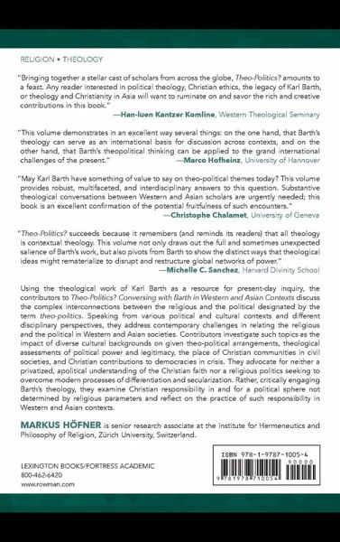 Using the theological work of Karl Barth as a resource for present-day inquiry, the contributors in this volume discuss the complex interconnections between the religious and the political designated by the term theo-politics. Speaking from various political and cultural contexts (Germany, the United Kingdom, the United States, Hong Kong, Taiwan, and the People’s Republic of China) and different disciplinary perspectives (Protestant Theology, Political Sciences, and Sociology), the contributors address contemporary challenges in relating the religious and the political in Western and Asian societies. Topics analyzed include the impact of diverse cultural backgrounds on given theo-political arrangements, theological assessments of political power, the political significance of individual and communal Christian existence and the place of Christian communities in civil societies. In their nuanced discussions of these topics, the contributors neither advocate for a privatized, apolitical understanding of the Christian faith nor for a religious politics seeking to overcome modern processes of differentiation and secularization. Critically engaging Barth’s theology, they examine the Christian responsibility in and for the political sphere and reflect on the practice of such responsibility in Western and Asian contexts.
