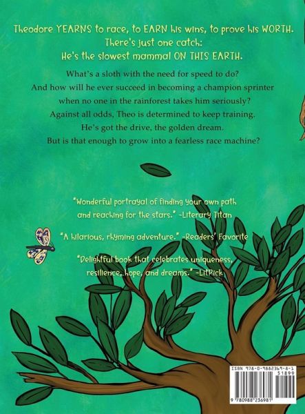 Theodore YEARNS to race, to EARN his wins, to prove his WORTH. There's just one catch: He's the slowest mammal ON THIS EARTH. What's a sloth with the need for speed to do? And how will he ever succeed as a champion sprinter, when no one in the rainforest takes him seriously? Against all odds, Theo is determined to keep training. He's got the drive, the golden dream. But is that enough to grow into a fearless race machine?