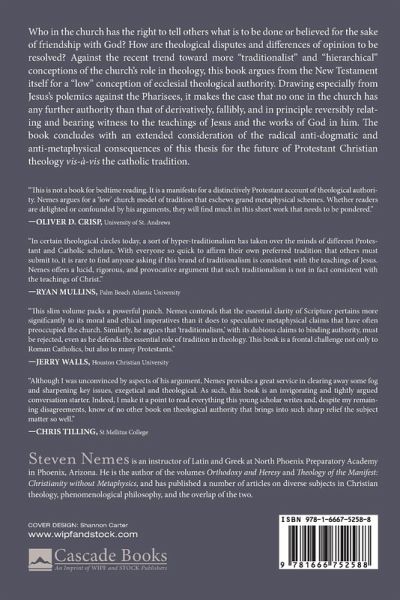 Who in the church has the right to tell others what is to be done or believed for the sake of friendship with God? How are theological disputes and differences of opinion to be resolved? Against the recent trend toward more ""traditionalist"" and ""hierarchical"" conceptions of the church's role in theology, this book argues from the New Testament itself for a ""low"" conception of ecclesial theological authority. Drawing especially from Jesus's polemics against the Pharisees, it makes the case that no one in the church has any further authority than that of derivatively, fallibly, and in principle reversibly relating and bearing witness to the teachings of Jesus and the works of God in him. The book concludes with an extended consideration of the radical anti-dogmatic and anti-metaphysical consequences of this thesis for the future of Protestant Christian theology vis-a-vis the catholic tradition.