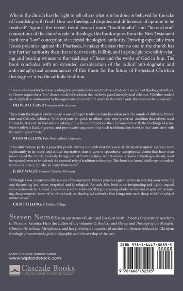 Who in the church has the right to tell others what is to be done or believed for the sake of friendship with God? How are theological disputes and differences of opinion to be resolved? Against the recent trend toward more ""traditionalist"" and ""hierarchical"" conceptions of the church's role in theology, this book argues from the New Testament itself for a ""low"" conception of ecclesial theological authority. Drawing especially from Jesus's polemics against the Pharisees, it makes the case that no one in the church has any further authority than that of derivatively, fallibly, and in principle reversibly relating and bearing witness to the teachings of Jesus and the works of God in him. The book concludes with an extended consideration of the radical anti-dogmatic and anti-metaphysical consequences of this thesis for the future of Protestant Christian theology vis-a-vis the catholic tradition.
