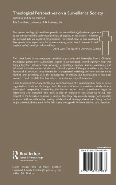 This book looks at contemporary surveillance practices and ideologies from a Christian theological perspective. Surveillance studies is an emerging, inter-disciplinary field that brings together scholars from sociology, criminology, political studies, computing and information studies, cultural studies and other disciplines. Although surveillance has been a feature of all societies since humans first co-operated to watch over one another whilst hunting and gathering it is the convergence of information technologies within both commerce and the state that has ushered in a 'surveillance society'. There has been little, if any, theological consideration of this important dimension of social organisation; this book fills the gap and offers a contribution to surveillance studies from a theological perspective, broadening the horizon against which surveillance might be interpreted and evaluated. This book is also an exercise in consciousness-raising with respect to the Christian community in order that they may critically engage with a surveillance society by drawing on biblical and theological resources. Being the first major theological treatment in the field it sets the agenda for more detailed considerations.