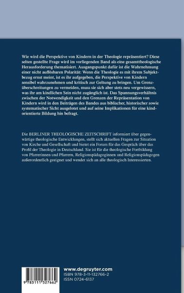 Wie wird die Perspektive von Kindern in der Theologie repräsentiert? Diese selten gestellte Frage wird im vorliegenden Band als eine gesamttheologische Herausforderung thematisiert. Ausgangspunkt dafür ist die Wahrnehmung einer nicht auflösbaren Polarität: Wenn die Theologie es mit ihrem Subjektbezug ernst meint, ist es ihr aufgegeben, die Perspektive von Kindern sensibel wahrzunehmen und kritisch zur Geltung zu bringen. Um Grenzüberschreitungen zu vermeiden, muss sie sich aber stets neu vergewissern, was ihr am kindlichen Sein nicht zugänglich ist. Das Spannungsverhältnis zwischen der Notwendigkeit und den Grenzen der Repräsentation von Kindern wird in den Beiträgen des Bandes aus biblischer, historischer sowie systematischer Sicht ausgelotet und auf seine Implikationen für eine kindorientierte Bildung hin befragt.
