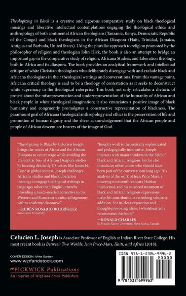 Theologizing in Black is a creative and rigorous comparative study on black theological musings and liberative intellectual contemplations engaging the theological ethics and anthropology of both continental African theologians (Tanzania, Kenya, Democratic Republic of the Congo) and black theologians in the African Diaspora (Haiti, Trinidad, Jamaica, Antigua and Barbuda, United States). Using the pluralist approach to religion promoted by the philosopher of religion and theologian John Hick, the book is also an attempt to bridge an important gap in the comparative study of religion, Africana Studies, and Liberation theology, both in Africa and its diaspora. The book provides an analytical framework and intellectual critique of white Christian theologians who deliberately disengage with and exclude black and Africana theologians in their theological writings and conversations. From this vantage point, Africana critical theology is said to be a theology of contestation as it seeks to deconstruct white supremacy in the theological enterprise. This book not only articulates a rhetoric of protest about the misrepresentation and underrepresentation of the humanity of African and black people in white theological imagination; it also enunciates a positive image of black humanity and congruently promulgates a constructive representation of blackness. The paramount goal of Africana theological anthropology and ethics is the preservation of life and promotion of human dignity and the sheer acknowledgement that the African people and people of African descent are bearers of the image of God.