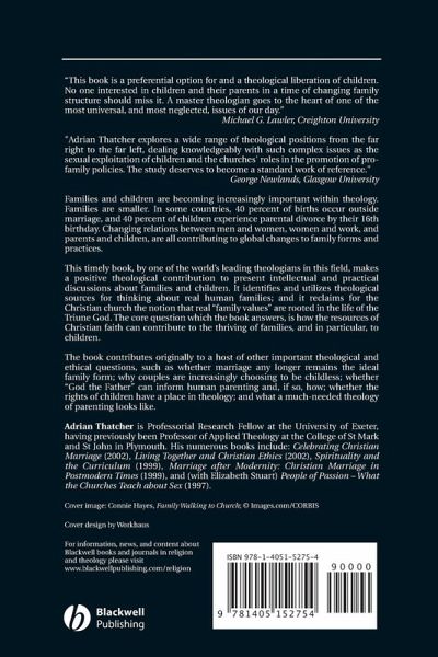 "This volume is carefully constructed, well documented,comprehensive and in general excellent. The combination of thedoctrinal tradition (e.g. the Trinity and baptism) with expertisein contemporary thought on social issues ( e.g. children'srights, issues of choosing childlessness and step-families) isimpressive. Adrian Thatcher explores a wide range of theologicalpositions from the far right to the far left, dealing knowledgeablywith such complex issues as the sexual exploitation of children andthe churches' roles in the promotion of pro-family policies.The study deserves to become a standard work of reference."George Newlands, Glasgow University