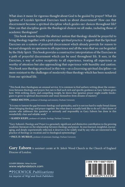 What does it mean for rigorous thought about God to be guided by prayer? What do Ignatius of Loyola's Spiritual Exercises teach us about discernment? How can that discernment become a spiritual discipline which guides our choices throughout life? How can that discipline guide the theological choices we all make, including those of academic theologians? This book moves beyond the abstract notion that theology should be prayerful to bring theology together with a particular spiritual practice. It argues that the Spiritual Exercises are a system of prayerful discernment which already provide for reason to be used alongside an openness to all experience and all the ways that we can be guided by the Holy Spirit. This book provides a constructive interpretation of the Exercises as a path of prayerful discernment which can be used throughout life. It sees, in the Exercises, a way of active receptivity to all experience, treating all experience as worthy of attention but also approaching that experience with humility and caution. This book sees theology practiced in this way--as a discerning spiritual discipline--as more resistant to the challenges of modernity than theology which has been sundered from our spiritual life.