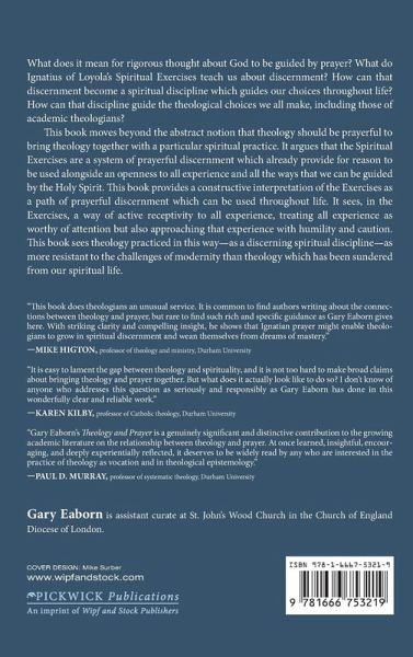 What does it mean for rigorous thought about God to be guided by prayer? What do Ignatius of Loyola's Spiritual Exercises teach us about discernment? How can that discernment become a spiritual discipline which guides our choices throughout life? How can that discipline guide the theological choices we all make, including those of academic theologians? This book moves beyond the abstract notion that theology should be prayerful to bring theology together with a particular spiritual practice. It argues that the Spiritual Exercises are a system of prayerful discernment which already provide for reason to be used alongside an openness to all experience and all the ways that we can be guided by the Holy Spirit. This book provides a constructive interpretation of the Exercises as a path of prayerful discernment which can be used throughout life. It sees, in the Exercises, a way of active receptivity to all experience, treating all experience as worthy of attention but also approaching that experience with humility and caution. This book sees theology practiced in this way--as a discerning spiritual discipline--as more resistant to the challenges of modernity than theology which has been sundered from our spiritual life.