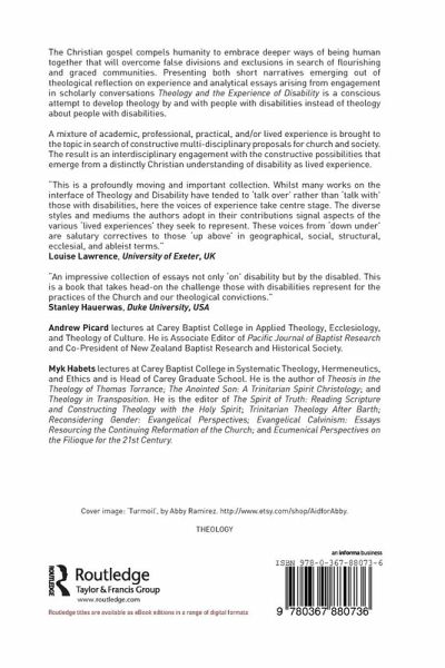 The Christian gospel compels humanity to embrace deeper ways of being human together that will overcome false divisions and exclusions in search of flourishing and graced communities. Presenting both short narratives emerging out of theological reflection on experience and analytical essays arising from engagement in scholarly conversations Theology and the Experience of Disability is a conscious attempt to develop theology by and with people with disabilities instead of theology about people with disabilities. A mixture of academic, professional, practical, and/or lived experience is brought to the topic in search of constructive multi-disciplinary proposals for church and society. The result is an interdisciplinary engagement with the constructive possibilities that emerge from a distinctly Christian understanding of disability as lived experience.