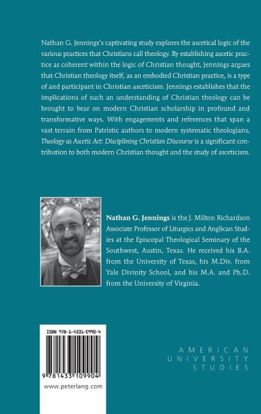 Nathan G. Jennings's captivating study explores the ascetical logic of the various practices that Christians call theology. By establishing ascetic practice as coherent within the logic of Christian thought, Jennings argues that Christian theology itself, as an embodied Christian practice, is a type of and participant in Christian asceticism. Jennings establishes that the implications of such an understanding of Christian theology can be brought to bear on modern Christian scholarship in profound and transformative ways. With engagements and references that span a vast terrain from Patristic authors to modern systematic theologians, Theology as Ascetic Act: Disciplining Christian Discourse is a significant contribution to both modern Christian thought and the study of asceticism.