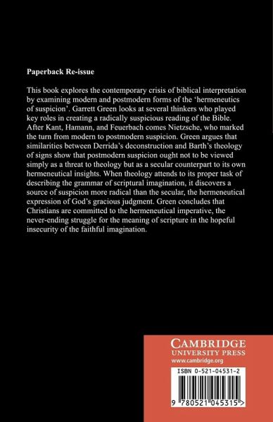 Preface 1. Theological hermeneutics in the twilight of modernity Part I. The Modern Roots of Suspicion 2. The scandal of positivity: the Kantian paradigm in modern theology 3. Against purism: Hamann's metacritique of Kant 4. Feuerbach: forgotten father of the hermeneutics of suspicion 5. Nietzschean suspicion and the Christian imagination Part II. Christian Imagination in a Postmodern World: 6. The hermeneutics of difference: suspicion in postmodern guise 7. The hermeneutic imperative: interpretation and the theological task 8. The faithful imagination: suspicion and trust in a postmodern world Appendix: Hamann's letter to Kraus Bibliography Index.