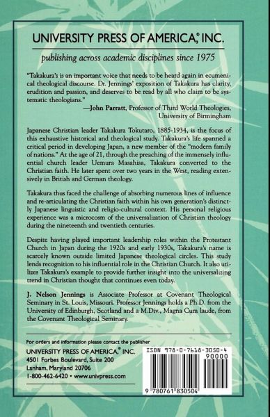 Japanese Christian leader Takakura Tokutaro (1885-1934) is the focus of this exhaustive historical and theological study. Despite having played important leadership roles within the Protestant Church in Japan during the 1920s and early 1930s, Takakura's name is scarcely known outside limited Japanese theological circles. This study lends recognition to his influential role in the Christian Church. It also utilizes Takakura's example to provide further insight into the universalizing trend in Christian thought that continues even today.