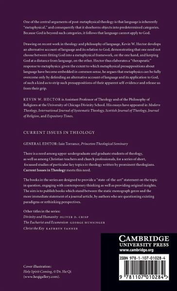 One of the central arguments of post-metaphysical theology is that language is inherently 'metaphysical' and consequently that it shoehorns objects into predetermined categories. Because God is beyond such categories, it follows that language cannot apply to God. Drawing on recent work in theology and philosophy of language, Kevin Hector develops an alternative account of language and its relation to God, demonstrating that one need not choose between fitting God into a metaphysical framework, on the one hand, and keeping God at a distance from language, on the other. Hector thus elaborates a 'therapeutic' response to metaphysics: given the extent to which metaphysical presuppositions about language have become embedded in common sense, he argues that metaphysics can be fully overcome only by defending an alternative account of language and its application to God, so as to strip such presuppositions of their apparent self-evidence and release us from their grip.