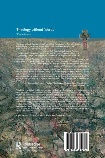 Theology without Words is not only an original contribution to Disability Studies, but also offers a fascinating insight into a silent world where meaning and faith are alive and well without speech. John M. Hull, Emeritus Professor of Religious Education, University of Birmingham and Honorary Professor of Practical Theology, Queen's Foundation for Ecumenical Theological Education, UK Theology without Words is a well written book and challenges 'mainstream' theology to take more notice of other theologies, particularly the story-telling nature of Deaf theology. Revd. Cathy Nightingale, Chaplain among Deaf People and Team Vicar, Diocese of Manchester, Church of England The theology of disability needs thinkers who are careful and rigorous, yet thoughtful and creative. Wayne Morris is all of these things. In this challenging and provocative book Morris not only opens our eyes to new perspectives on a practical theology of deafness, he also provides deep methodological and practical insights into how the field of disability can and should be researched and precisely why it might be important that this is done well. This is an important book. John Swinton, Professor in Practical Theology and Pastoral Care, King's College, University of Aberdeen, UK 'Morris' book is a valuable, well-researched combination of theological analysis and ethnographic studies and is an important contribution to the growing field of theology and disability studies. This book is practical theology at its finest and can be read profitably by theological scholars and church professionals alike.' Religious Studies Review '... for readers without experience of the deaf community Theology Without Words provides a window through which that community may begin to be seen and to be better valued for its uniqueness.' Theology 'This study, an important addition to the Practical Theology series, is also a valuable contribution to the field of Disability Studies. ... I found that the most